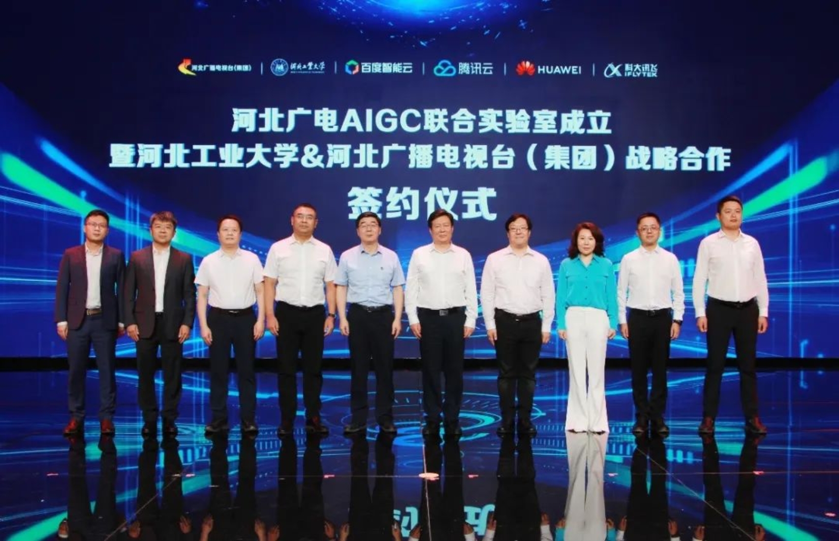7月11日下午,河北工業大學與河北廣播電視臺(集團)舉行戰略合作簽約儀式,攜手設立“冀視·河工智媒中心”,并與騰訊云、百度智能云、華為、科大訊飛等人工智能領域頭部企業聯合組建創新、多贏平臺——河北廣播電視臺(集團)AIGC聯合實驗室。今后,雙方將務實合作,共同開啟“廣電+高校”資源共享、優勢互補、合作共贏的新篇章。