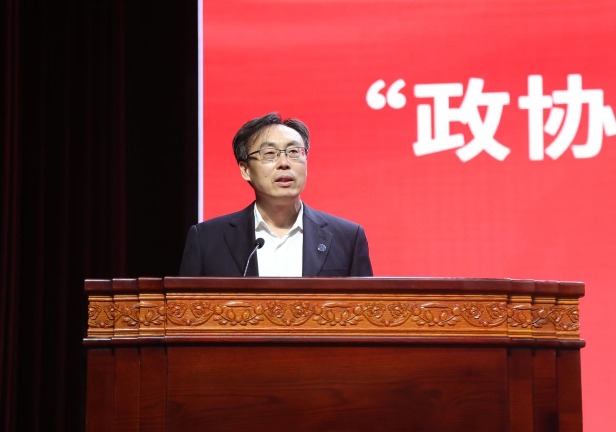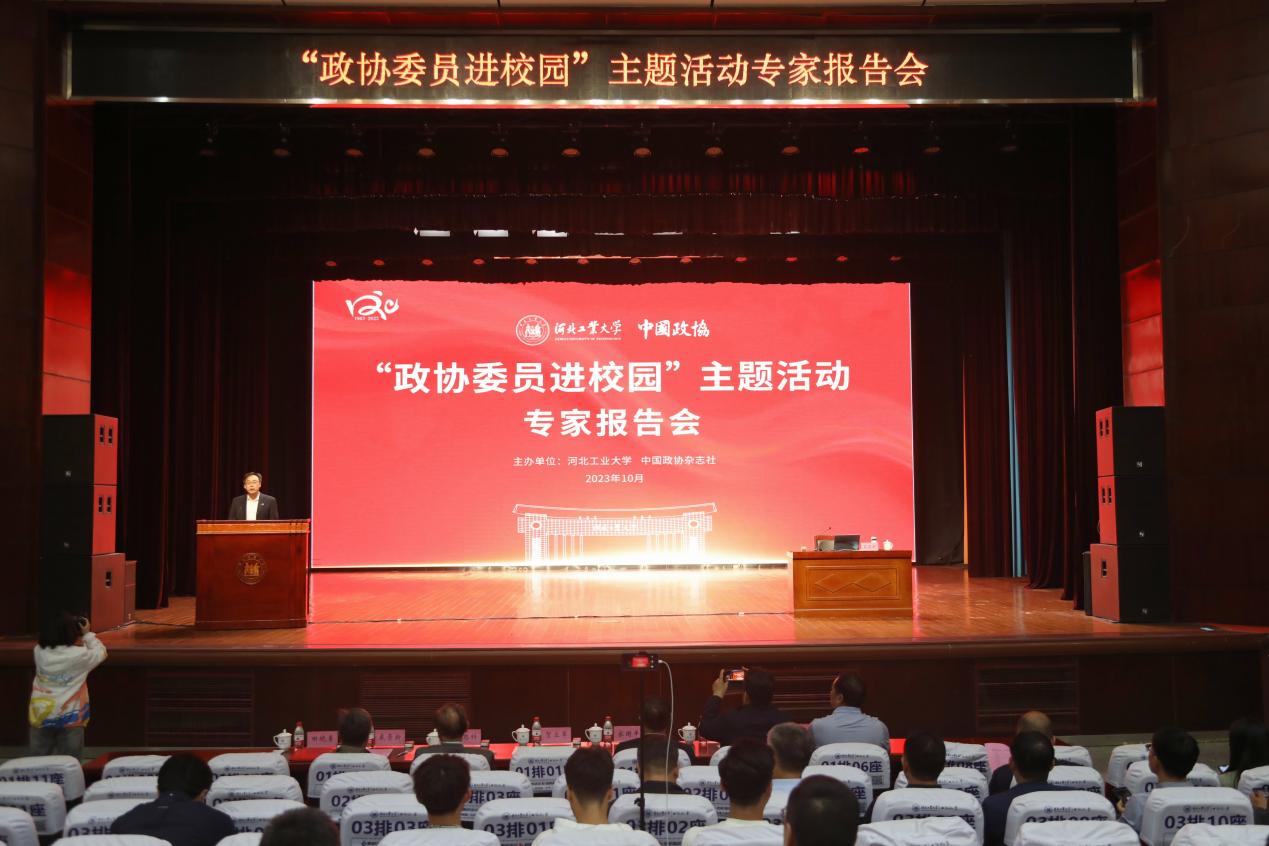 報告開始前,賀立軍代表學校熱烈歡迎專家和嘉賓的到來。他表示,2023年是河北工業大學建校120周年,這是學校發展歷史的重要節點,也是全體師生奮進新征程、建功新時代的嶄新起點,學校與中國政協雜志社聯合打造的“政協委員進校園”主題活動,旨在搭建政協委員在高校傳遞黨的聲音、聯系青年學生、凝聚正能量的新平臺。中國政協不同界別的委員,有著扎實的理論基礎和豐富的實踐經驗。他希望大家珍惜這個極為難得的機會,學習他們堅如磐石的理想信念、和衷共濟的愛國情懷、深入淺出的分析講解和謙虛親和的人格魅力,開闊眼界、增長見識、提升修養。希望學校和中國政協雜志社將“政協委員進校園”主題活動辦出特色、辦成品牌。