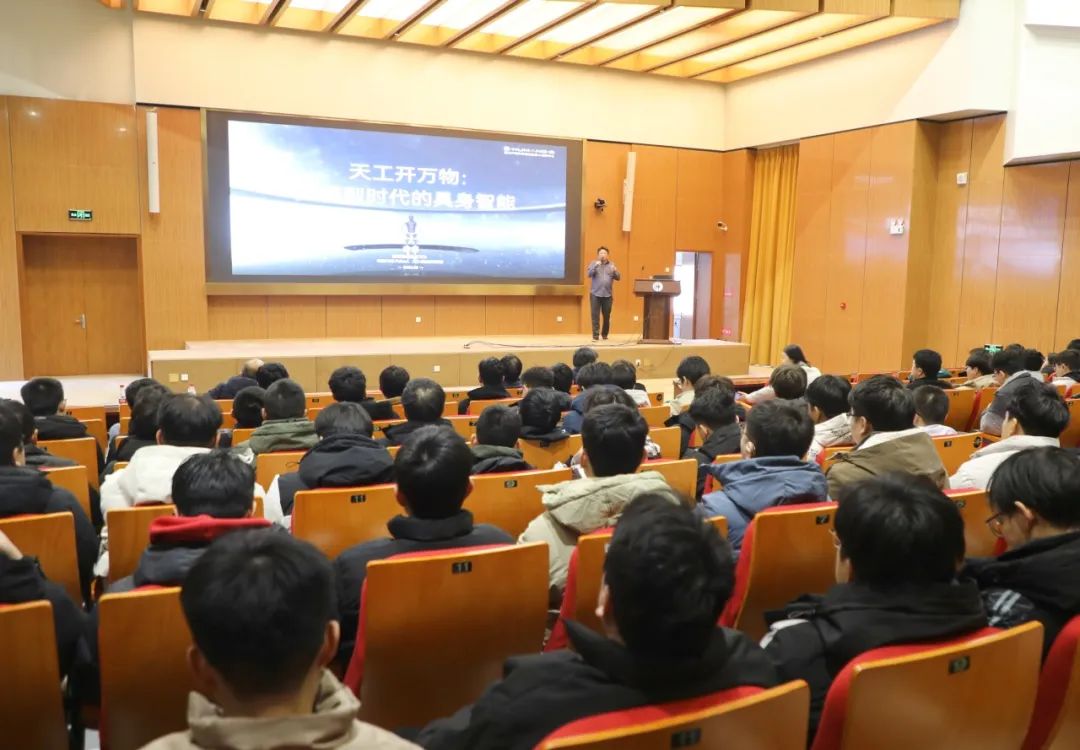 下午,學(xué)術(shù)報(bào)告會在機(jī)材樓一樓報(bào)告廳舉行。唐劍作了題為“天工開萬物-大模型時(shí)代的具身智能”的精彩報(bào)告,深入解讀大模型時(shí)代具身智能的的應(yīng)用前景和發(fā)展趨勢,為參會人員帶來前沿學(xué)術(shù)理念和技術(shù)思路。