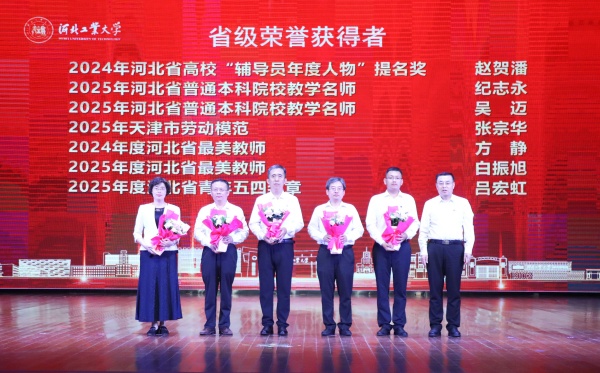 在“勤慎公忠?匠心傳承”篇章,表彰聚焦校內(nèi)師德典范與教學(xué)骨干。校領(lǐng)導(dǎo)江浪、陳鴻雁、劉炳勝分別為獲得“2025年度河北工業(yè)大學(xué)師德先進個人”“2025年河北工業(yè)大學(xué)教學(xué)名師”“第二屆元光教學(xué)名師”的教師代表頒發(fā)證書,表彰他們用行動詮釋“學(xué)高為師,身正為范”。