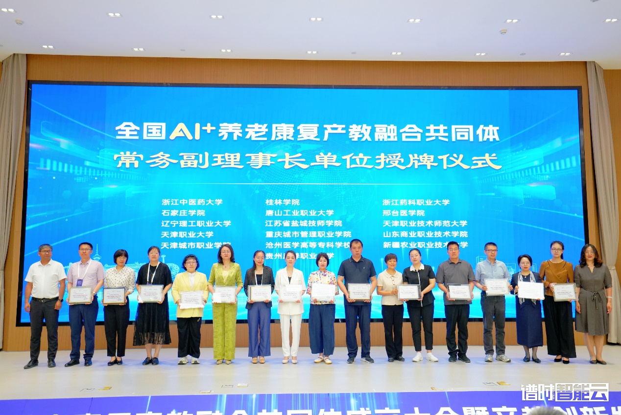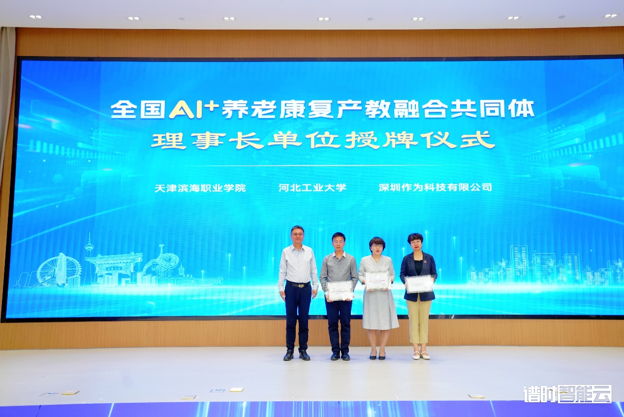 啟動儀式上,天津濱海職業學院、河北工業大學、深圳作為科技有限公司作為牽頭單位,聯合啟動成立了“全國AI+養老康復產教融合共同體”。