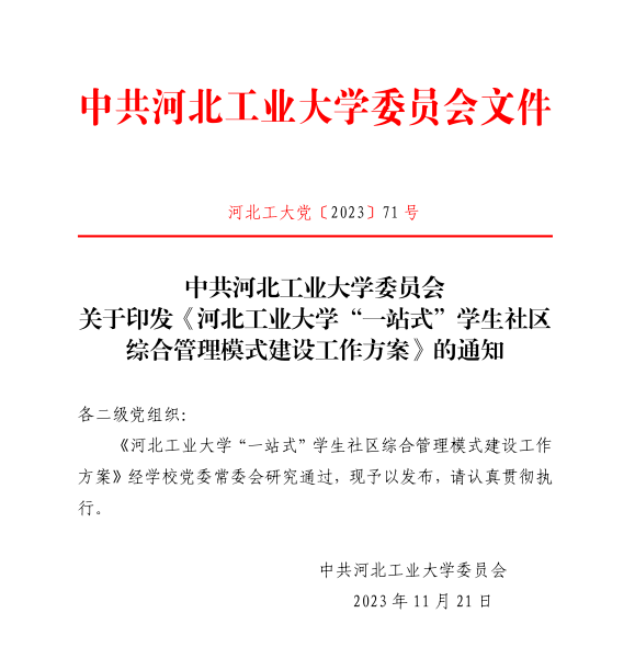 以“一站式”學生社區綜合管理模式改革為切入點,著力打造隊伍入駐、學生參與、文化浸潤的特色育人園區。出臺《河北工業大學“一站式”學生社區綜合管理模式建設工作方案》;搭建“一站式”學生社區黨組織體系,持續推進“包聯”工作機制和輔導員“三走進——引領”專項工作;深化HEBUT Family——河工“家”社區文化內涵建設,自主設計河工“家”族學生社區IP形象、社區LOGO;形成了“勞動·創意”市集、社區音樂節、社區游園會等多項品牌活動;啟動“宿舍安全衛生周督察”“宿舍衛生標兵紅旗月流動”和宿舍“評星定級”工作。