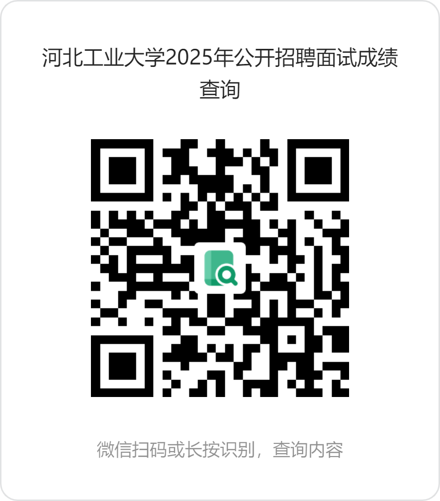 2025年11月15日,河北工業大學2025年公開招聘工作人員的面試已結束。依據《河北工業大學2025年公開招聘工作人員公告》中有關總成績合成和確定體檢、考察人選的規定,現將進入下一階段人員名單予以公布(見附件)。所有參加面試的考生可通過微信掃描下方二維碼自行查詢總成績結果,請考生及時查看并知悉。