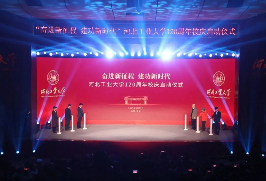 播放120周年校慶先導片之后,伴隨著“5、4、3、2、1……”的倒計時聲,黨委書記韓旭、60屆校友劉文藩、82級校友馬宏志、離退休教師代表王云峰、在職教師代表方靜、學生代表魏振偉上臺,共同啟動120周年校慶。啟動儀式主持人杜利波朗聲宣布:“奮進新征程 建功新時代”河北工業大學120周年校慶正式啟動!