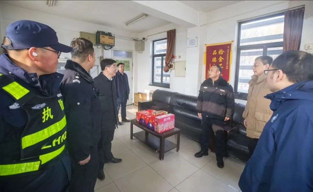 2月9日,農歷除夕清晨,河北工業大學黨委書記韓旭、黨委副書記張建暢、副校長趙斌等走進北辰校區、紅橋校區鍋爐房、學生宿舍、食堂、安工處值班室及校門值守崗位,與值班值守人員親切握手,互致問候,詳細詢問家里的安排和學校生活工作情況,并送上慰問品,表達節日的祝福。韓旭代表學校對值守人員在春節期間放棄與家人團聚,舍小家顧大家,堅守工作崗位表示由衷感謝。同時,他強調相關單位在值守期間,要高度注意安全作業與巡視巡查,確保校園安全穩定和正常運轉。