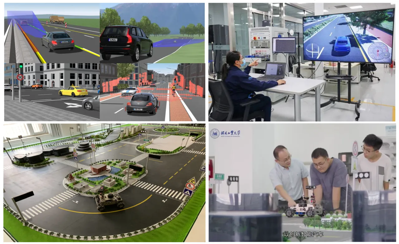 基于專業(yè)數(shù)智化建設(shè)需求,學(xué)校與中國汽車技術(shù)研究中心、長城汽車股份有限公司深度合作,建設(shè)校企共享多翼教學(xué)資源,共創(chuàng)多域?qū)嵺`教學(xué)平臺(tái),打造了“智能駕駛虛擬仿真實(shí)驗(yàn)室”“實(shí)景交互智能交通沙盤”“智能網(wǎng)聯(lián)汽車示范校區(qū)”三位一體的智慧實(shí)踐教學(xué)平臺(tái),有效地解決了專業(yè)人才培養(yǎng)中實(shí)踐場(chǎng)景少、實(shí)操難等問題。