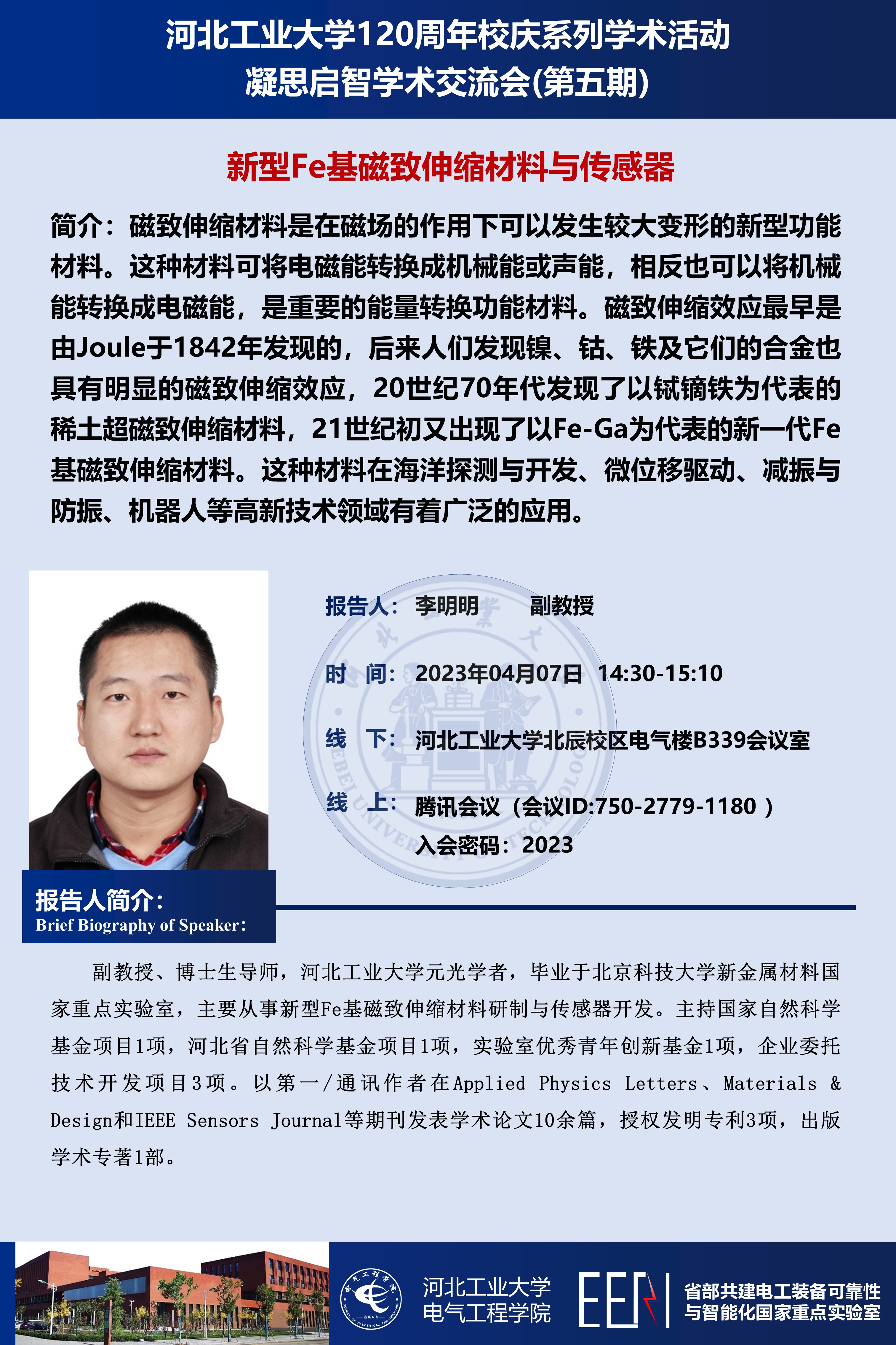 凝思啟智學術交流會(第五期):新型Fe基磁致伸縮材料與傳感器,大氣壓氣體放電及其等離子體射流應用