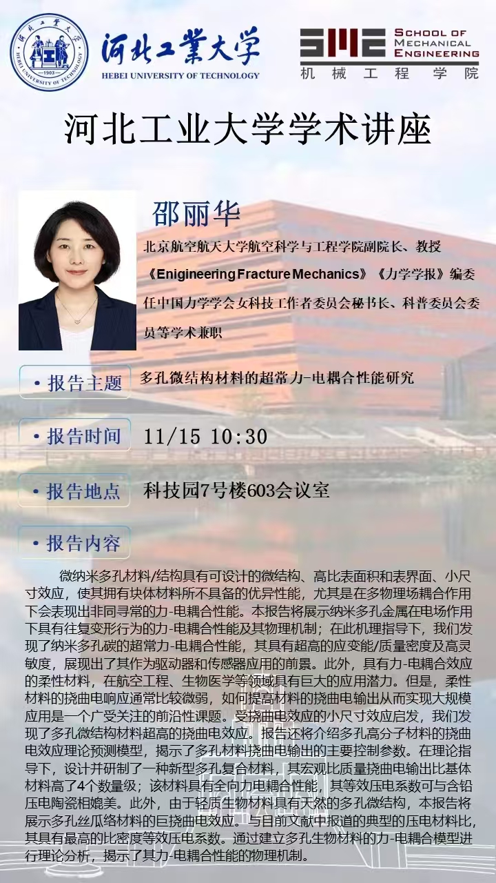 學術講座:多孔微結構材料的超常力-電耦合性能研究