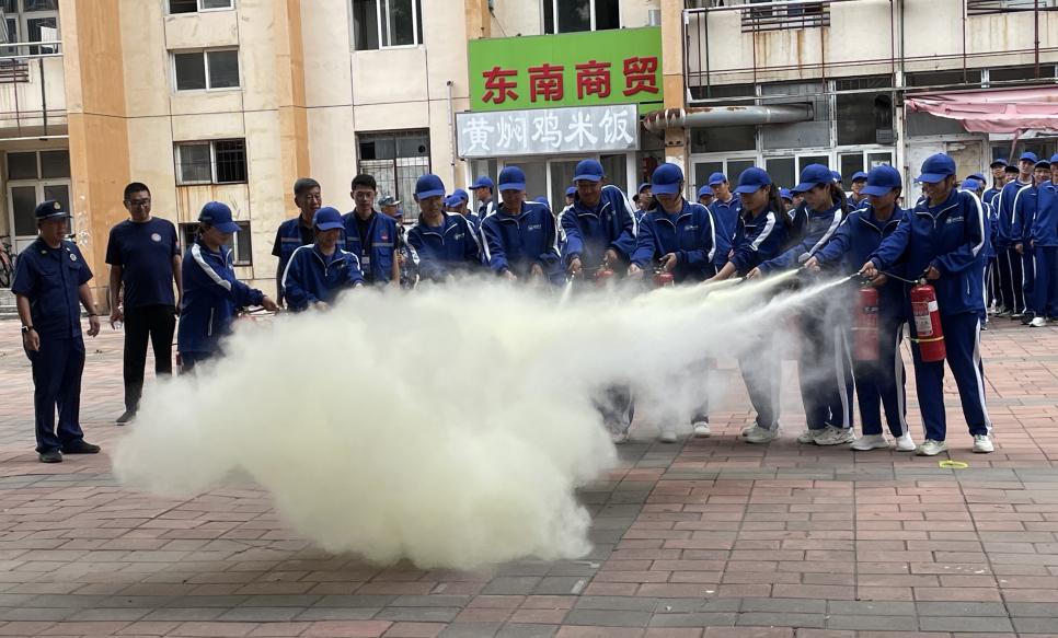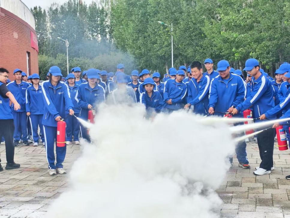 在消防工作人員的指導下,新生們分組列隊,全員完成了二氧化碳/干粉滅火器的實操訓練。大家嚴格按照“提、拔、握、壓”的規范動作,精準對準火焰根部噴射,通過親身實踐,切實掌握滅火器的使用技能。